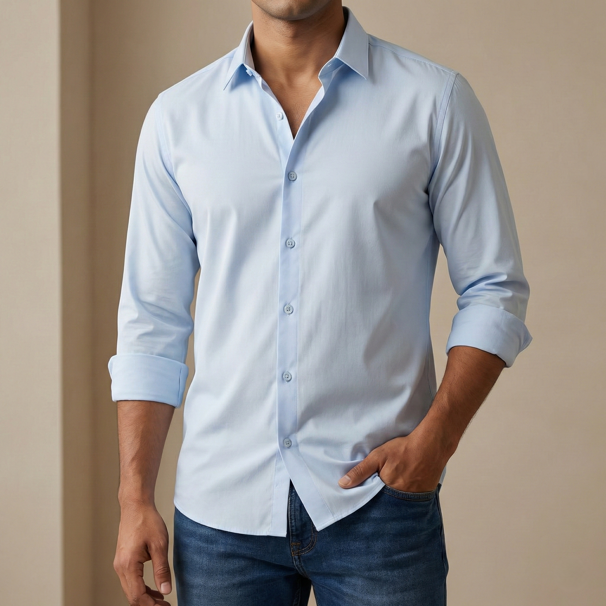 Premium China Micro Stig Shirt (Formal / Casual) (Light Sky)